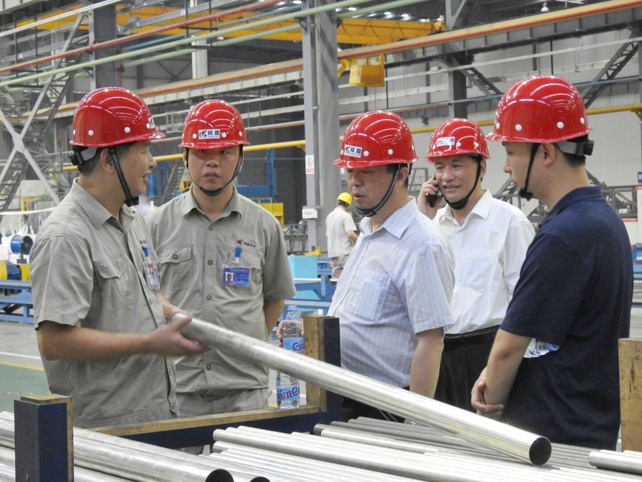 公司領(lǐng)導(dǎo)帶著國(guó)家發(fā)改委經(jīng)濟(jì)與國(guó)防協(xié)調(diào)發(fā)展司副司長(zhǎng)一行參觀了我司的鍛壓、擠壓、熔鑄車間。在參觀過程中,董事長(zhǎng)向大家詳盡的介紹了公司的產(chǎn)品優(yōu)越性,特殊生產(chǎn)工藝以及發(fā)展規(guī)劃。